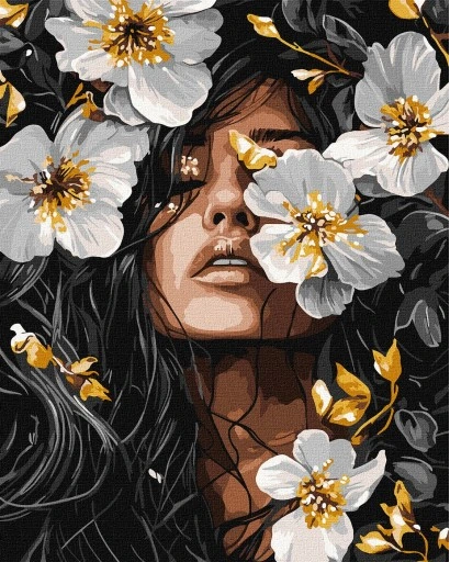 Tapyba pagal skaičius: MERGINA GĖLĖSE 40x50 cm