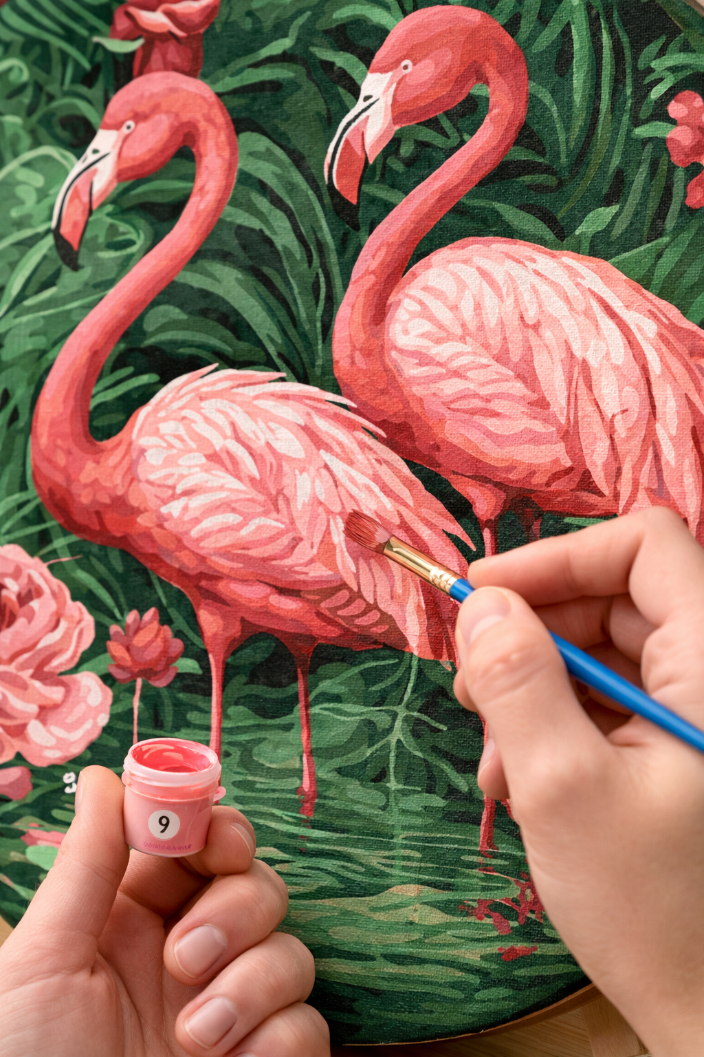 ✨ Tapyba pagal skaičius - apvalus: „ROŽINIAI FLAMINGAI“ ⌀ 39 cm